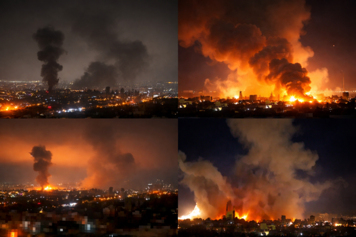 Imágenes difundidas tras los bombardeos muestran enormes bolas de fuego y densas columnas de humo elevándose sobre ciudades iraníes, incluyendo impactos en instalaciones estratégicas como la planta de agua pesada de Arak heavy water reactor, vinculada al programa nuclear iraní.