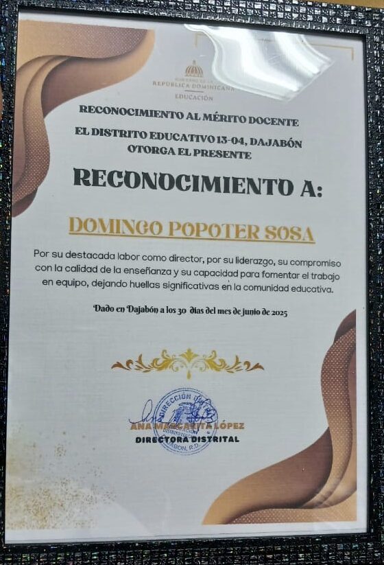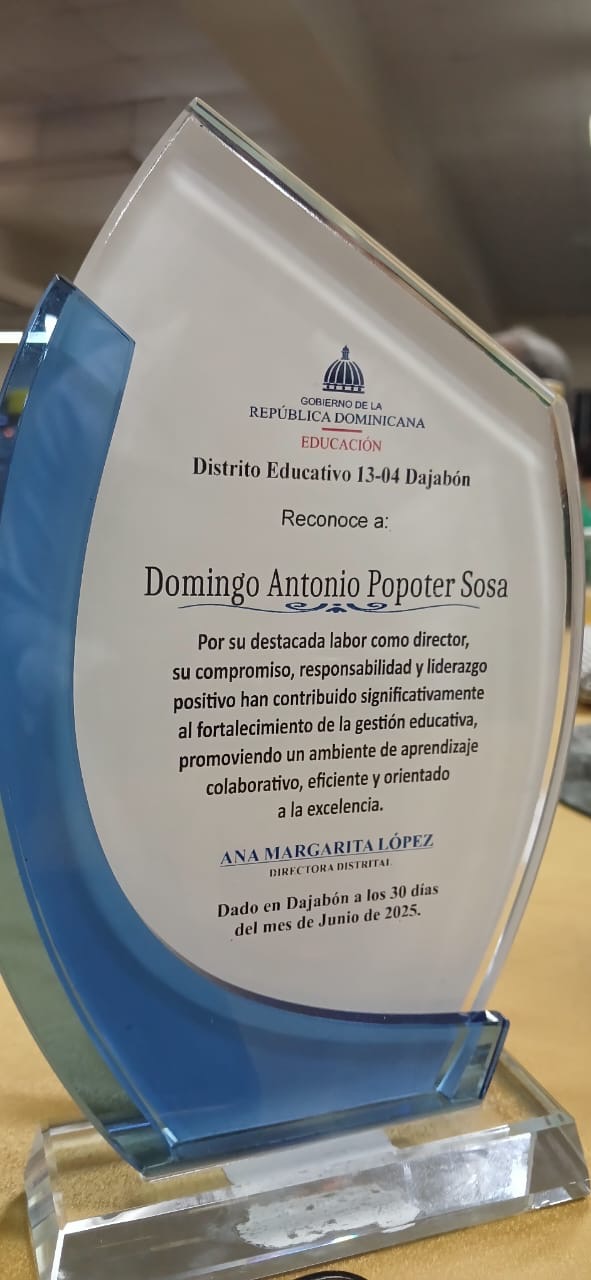 Dajabón, R.D. – En una noche llena de emociones, alegría y gratitud, el Distrito Educativo 13-04 de Dajabón celebró un acto especial de reconocimiento a directoras y directores de centros educativos, resaltando de manera especial la labor del docente Domingo Popoter Sosa, quien fue reconocido como director destacado por su gestión al frente del Centro Educativo La Altagracia.